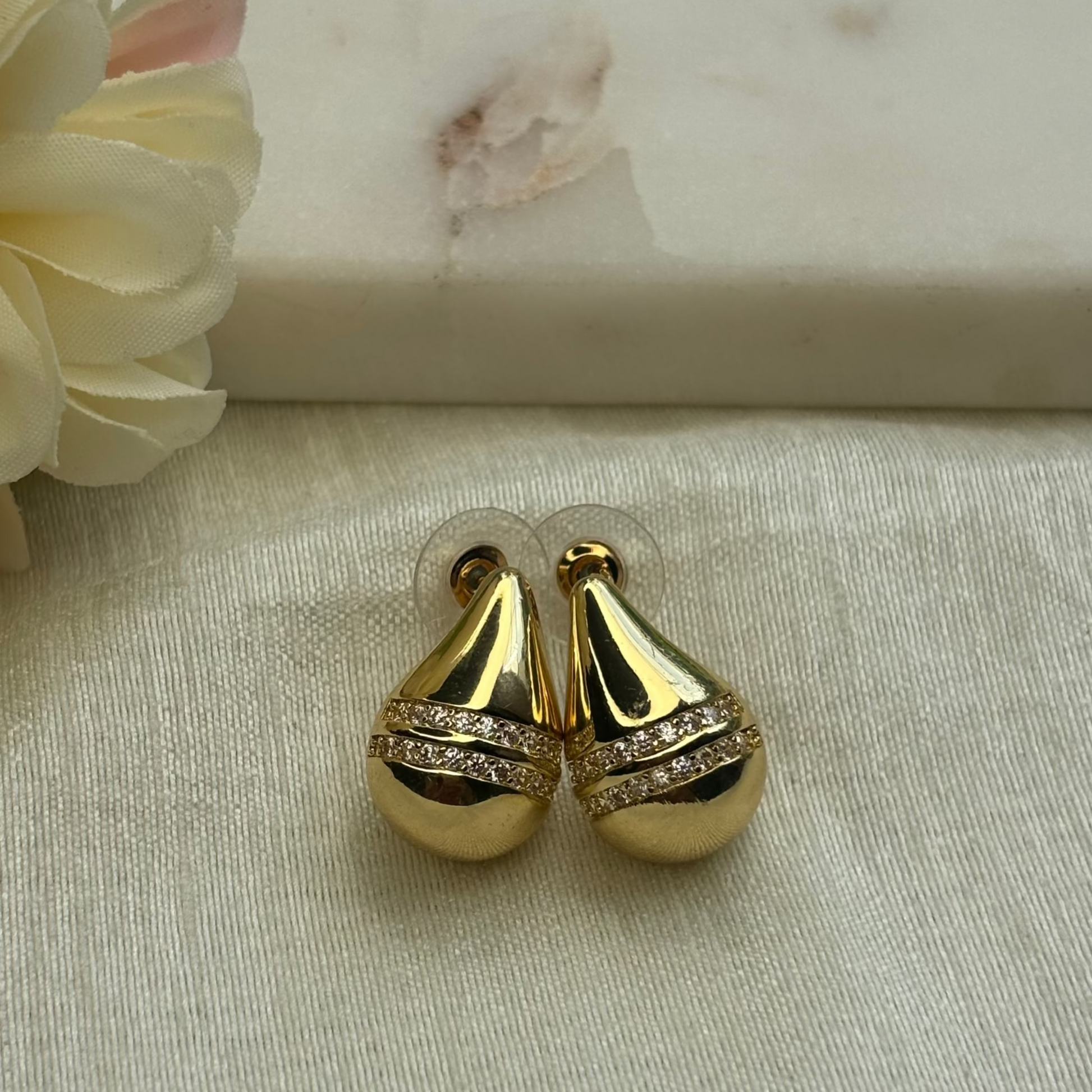 Golden Zircon Teardrop Studs