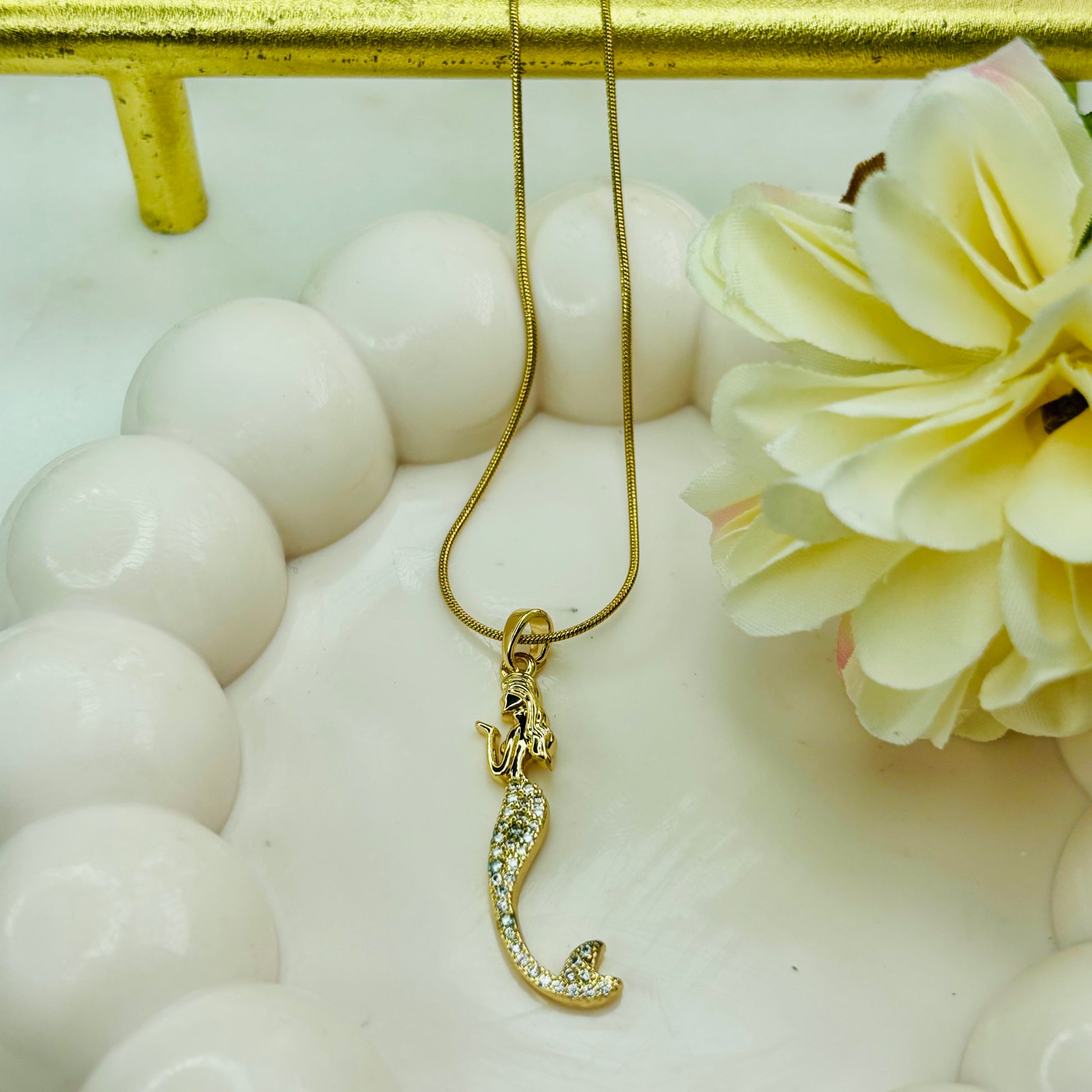 This Mermaid Necklace features a delicate, rope-like golden chain that adds a touch of elegance to any outfit. Its centerpiece is a charming mermaid pendant embedded with sparkling zircon stones, capturing the magic of the sea in shimmering detail.