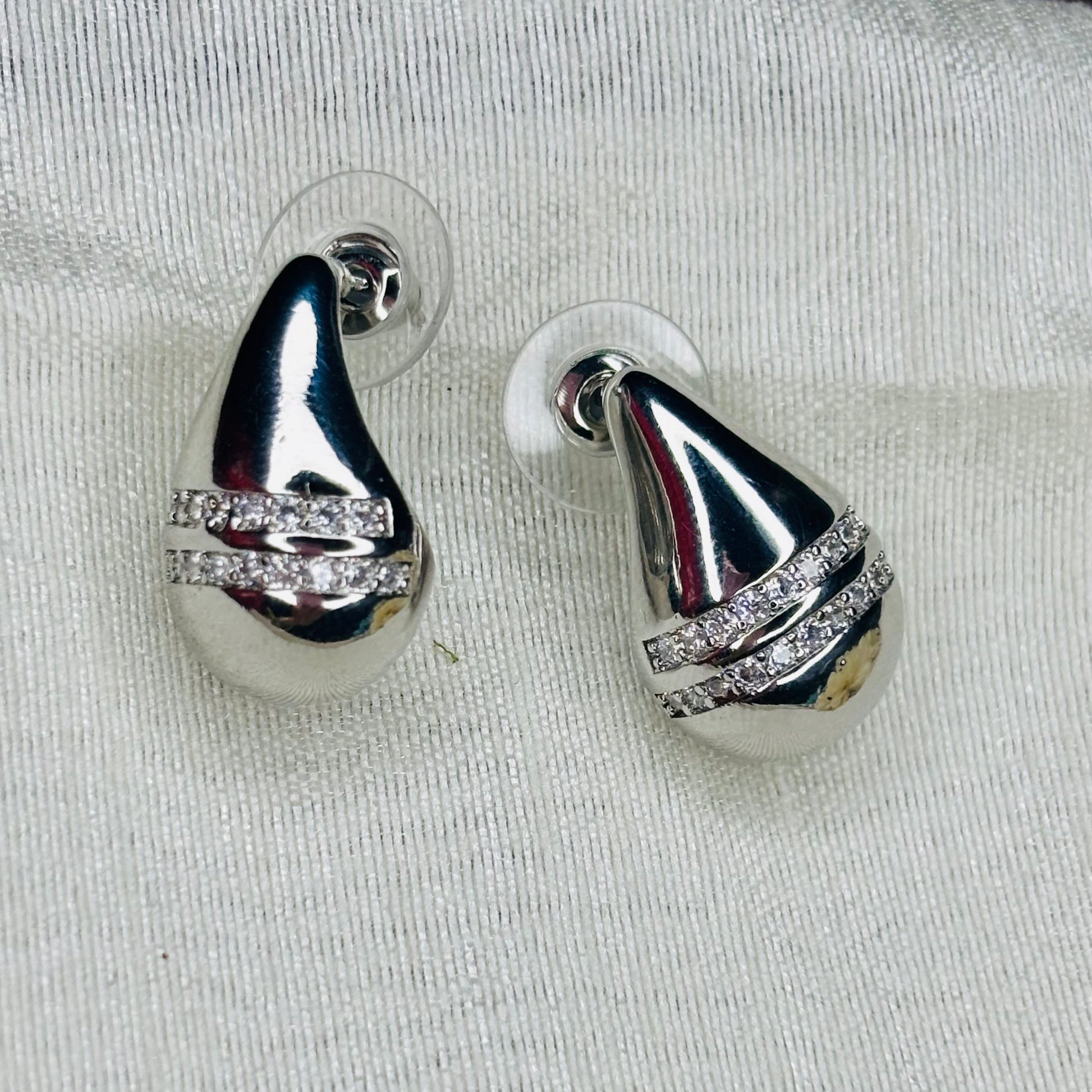 Polished silver-tone teardrop studs accented with twin rows of pavé crystals.