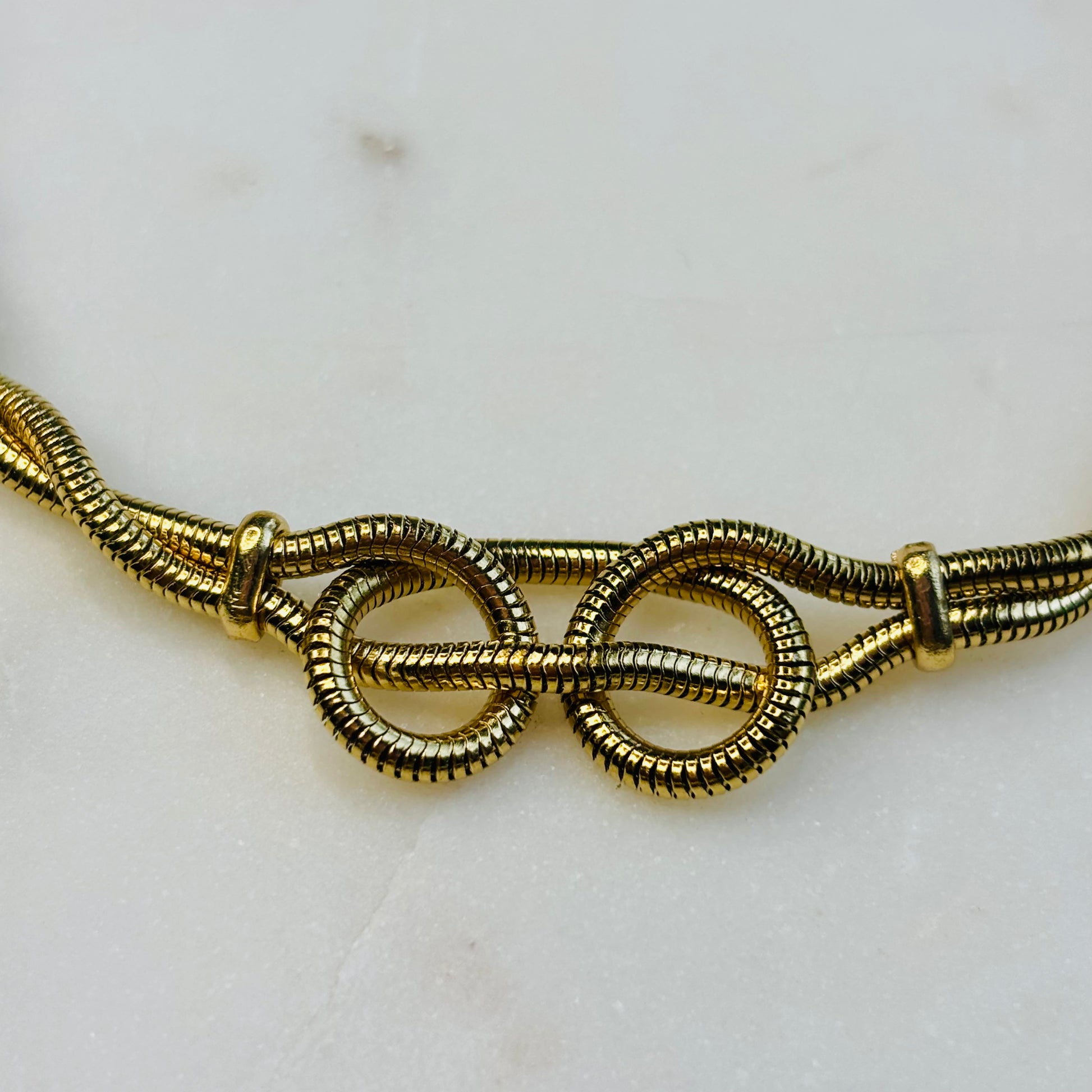 Turn heads with this mesmerizing double layered snake chain necklace that twists and intertwines in perfect harmony. The real magic? Two perfectly formed circles at the center that create an optical illusion—think bold bike goggles or mysterious owl eyes staring right back at you. It's edgy, it's intriguing, it's impossible to ignore.